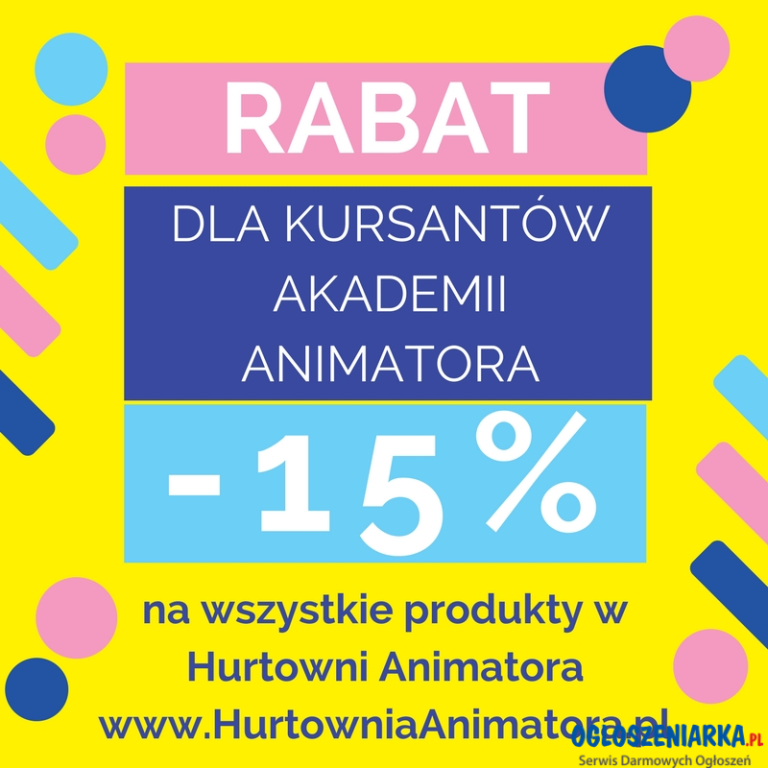 Hurtownia Animatora – Profesjonalne Akcesoria dla Animatorów, we współpracy z Akademią Animatora – AkademiaAnimatora.pl – przygotowała Specjalny Bonus dla Kursantów uczestniczących w Profesjonalnych Szkoleniach by Akademia Animatora – Animator Zabaw dla Dzieci, Animator Czasu Wolnego, Animator do Zadań Specjalnych.