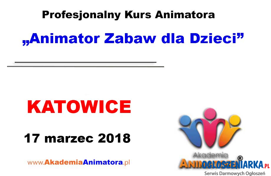 Zapraszamy na Profesjonalny Kurs Animatora Katowice 17.03.2018 !