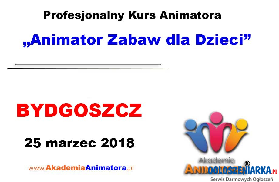 Zapraszamy na Profesjonalny Kurs Animatora Bydgoszcz 25.03.2018 !