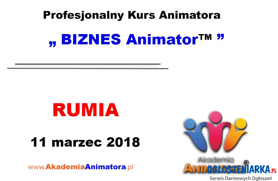 Zapraszamy na Profesjonalny Kurs Animatora Rumia - BIZNES Animator™ 11.03.2018 !